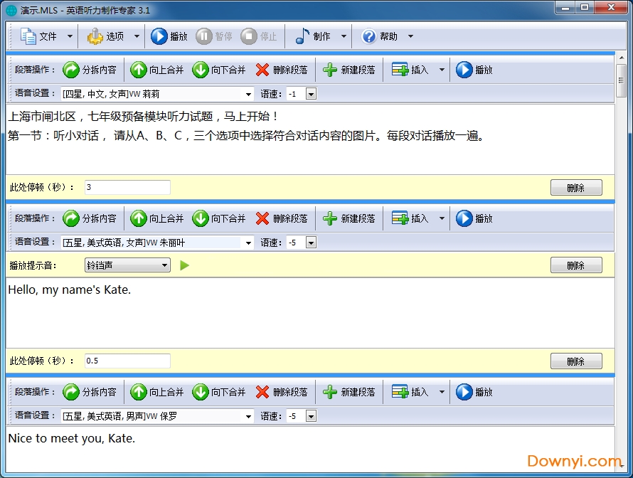 7.可任意调整每部分内容的朗读语速等,可针对不同年级的学生制作出不同难度的外语听力资料;