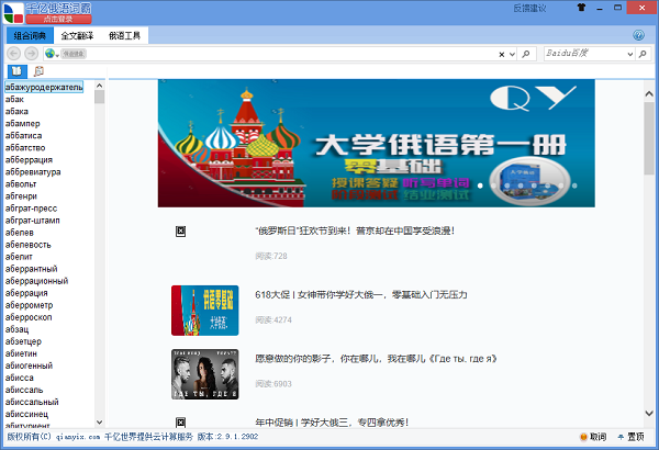 千亿俄语词霸提供免费俄语在线查词,人性化全文翻译,俄语社区服务,更有国内唯一的最强大的变格变位查询系统,为你提供优质、全面的俄语学习服务。