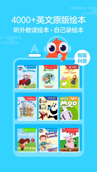 2、2000+本欧美原版英文绘本,与牛津、柯林斯等多家权威出版社合作,内容与国外小学同步,由专业外教老师配音