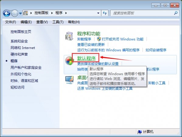 1.开始--控制面板--程序--默认程序