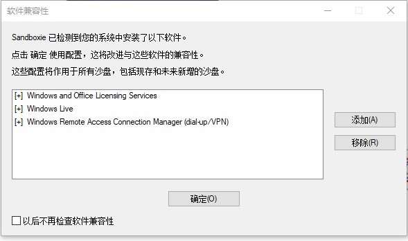 有些程序无法在沙盘中运行,比如adobe软件中的Media Encoder,在沙盘中运行会出错,但Pr或者Au却没问题,具体原因不详。