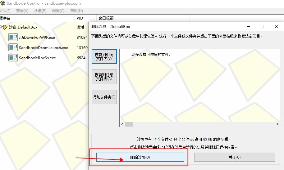当我们使用完后,可能会选择完全删除沙盘,不再保留数据,或者暂时性退出,在沙盘中保留操作(如安装后的程序),希望下次打开沙盘仍然可以使用。