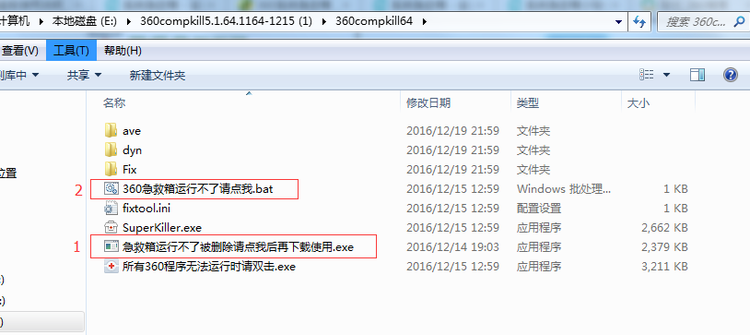 3.如果解压报错,或者解压后的急救箱无法正常运行,请按下图红色标注,运行图中的”急救箱运行不了”等两个程序,