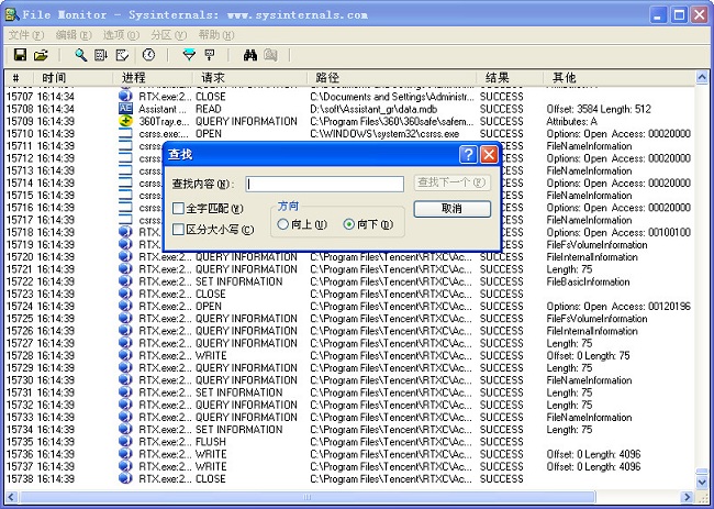 file monitor是一个强大的文件监控软件,可以监视每一个应用程序进行的文件读写操作。通过它你可以清晰的了解每一个程序当前的状态,您可以在软件中看到哪个程序当前是处于OPEN、READ、QUERY INFORMATION、WRITE还是CLOSE状态,让每个程序都在你的掌握之中。