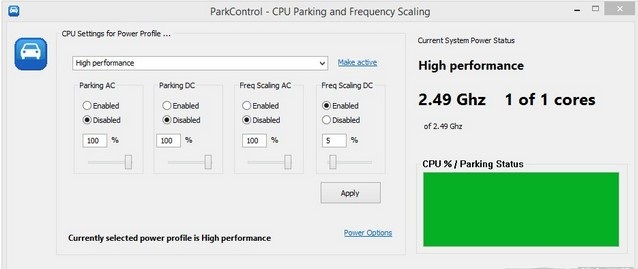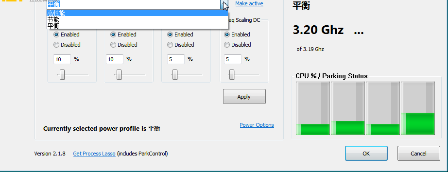 ParkControl使你可以用一个或多个电源配置文件调整 cpu 核心Parking。
