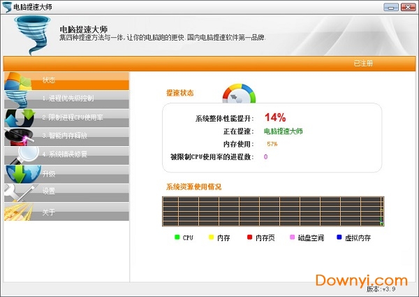 通过智能调整进程优先级,给需要的进程更高的优先级,以使期可以调用更多的系统资源,达到给电脑提速的效果。