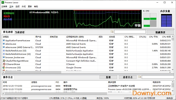 一款独特的调试进程级别的系统优化工具,主要功能是基于其特别的算法动态调整各个进程的优先级并设为合理的优先级以实现为系统减负的目的,可有效避免蓝屏、假死、进程停止响应、进程占用 cpu 时间过多等症状。同时它还具备前台进程推进、工作集修整、进程黑名单等附加特性。process lasso 中文版在后台实时智能优化您的系统,不会自动修改任何系统既有配置,适用于普通家庭用户和专业工作环境。