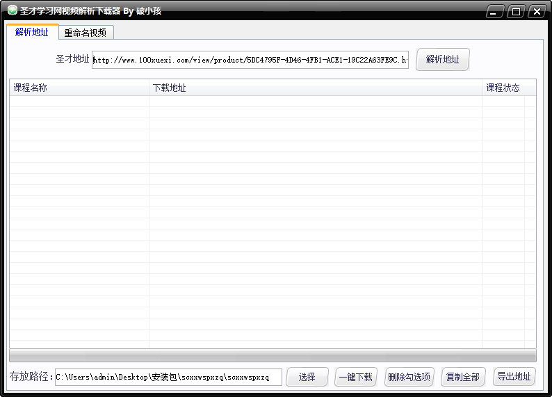 2、点击【解析地址】按钮即可获取该课程所有视频的下载地址;