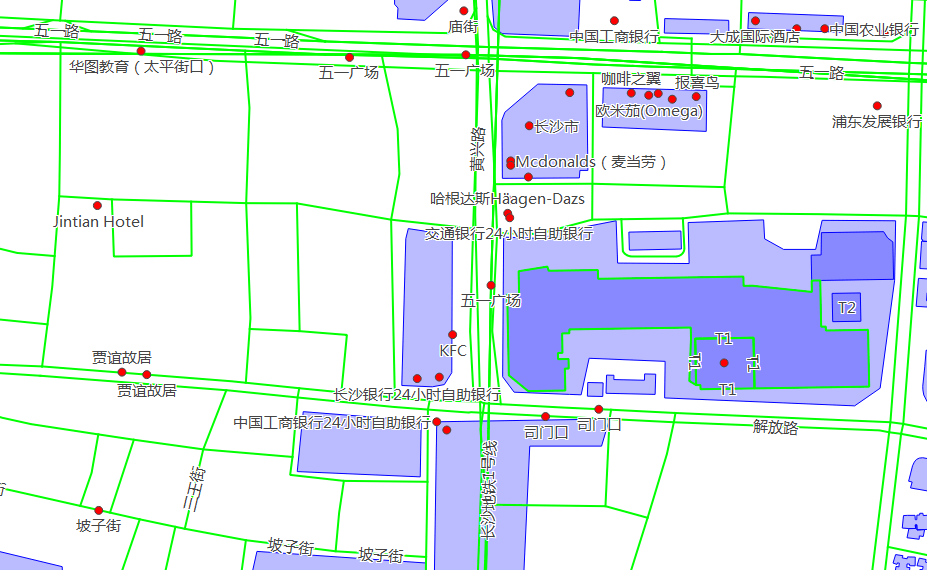 左图示例来自迈高图真实截图:长沙五一广场OSM矢量数据局部。图层标注字符编码集设置为UTF-8