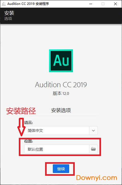 2、安装选项,默认语言为简体中文,默认安装路径在c盘,当然你也可以自己选择,小编在这里选择默认,点击“继续”;