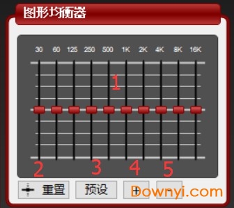 24、重置图形均衡器: 将图形均衡器频段重设为中性水平(0分贝)。