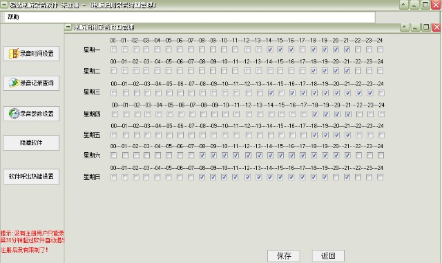 2.点击录音时间设置,选择需要录音的时间段。