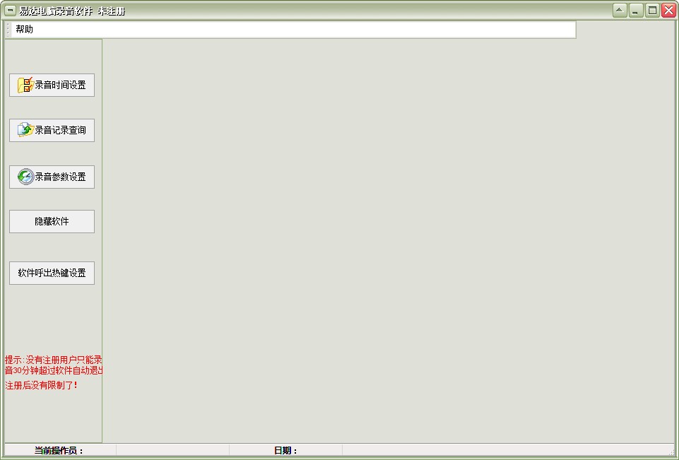 易达电脑录音软件是一款绿色免费的电脑录音软件,在该软件中几乎包含了所有同类录音软件中的功能,它主要支持录音时间设置、录音记录查询、录音参数设置以及软件快捷键设置四大功能,并且用户可自定义设置软件录音时间以及对所录音的音频文件进行管理!