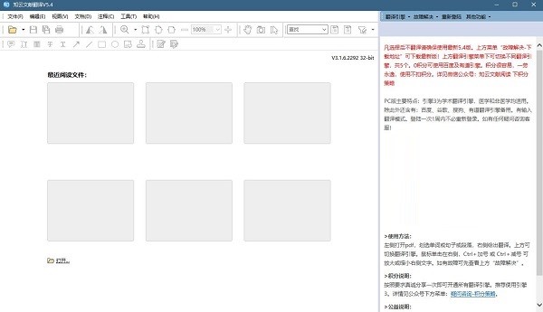 3. 自带PDF阅读器,左侧打开PDF,选择一段话,右侧自动给出翻译。自动语言识别,真正中英互译。
