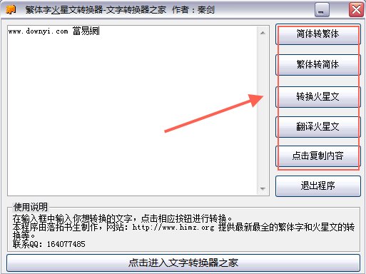 1、只需输入简体字或者火星文,点击中间的两个转换按钮,即可得到结果。