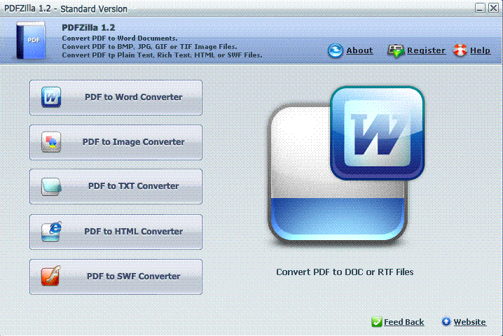 PDFZilla是一个pdf格式转换软件,它可以把pdf转换成word、图片、txt、html和swf格式。这个软件对于那些要写论文的人太重要了,因为下载的论文文献都是pdf格式,使用这个软件可以把pdf格式的论文直接转换成word,这样可以直接摘抄其中的段落,并且也适合搜索你要的论文信息哦。