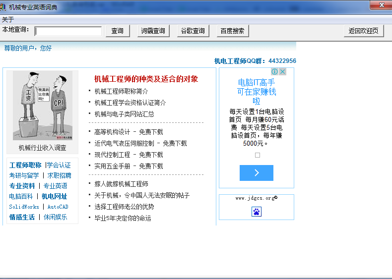 机械专业英语翻译软件包含机械电子工程相关专业词汇100,000余条,支持英汉、汉英双向查询;绿色软件,解压缩即可使用。界面友好,操作简单实用,对机械工作方面的人员一款很好的帮助软件。