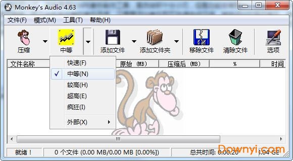 简单、实用的音频文件压缩工具,它不同于传统的音频压缩工具,需要永久性丢失一部分声音品质来获得较高的磁盘空间压缩比,monkey's audio采用先进的ape无损压缩格式,压缩率接近50%,并且压缩后的品质跟原始声音的品质完全是一样的