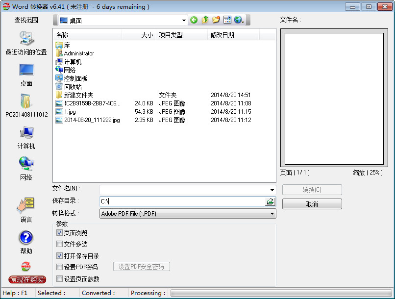 如果转换成PDF格式,你可以设置转换后PDF打开密码。设置转换后页面的位置。并且该软件支持多种语言,含有中文,英文,法语,德语,意大利语,日语。