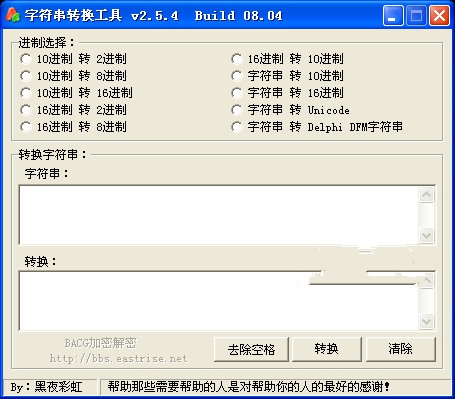 字符串转换工具一个很好用的绿色版的字符串转换工具,比较经典的个工具,可以转换10进制16进制字符串等;有需要的朋友可以来进行免费下载使用。