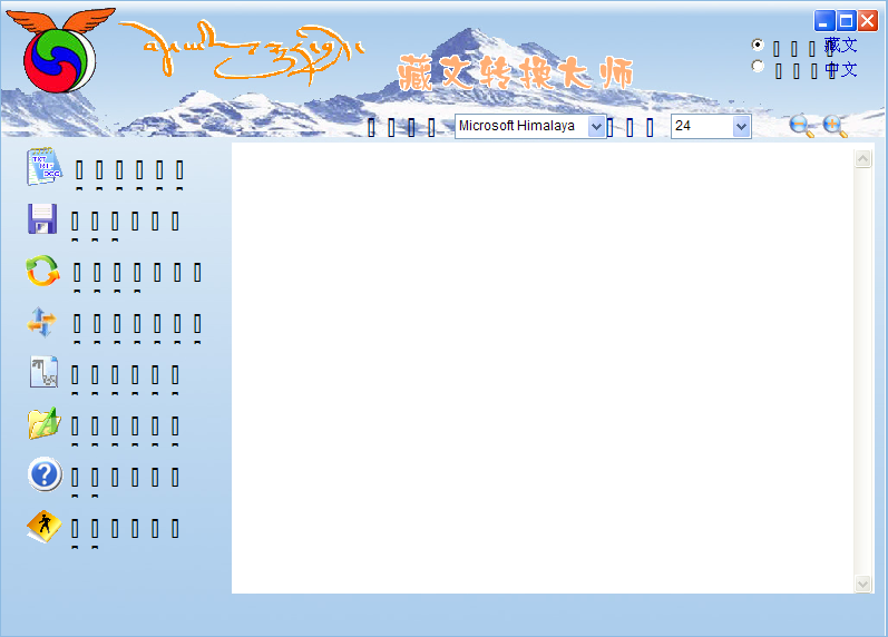 是一款将不同编码的藏文文件相互转换的软件。可进行Himalaya、sambhota、班智达、同元、方正、华光等藏文文件的互转, 解决了不同编码藏文文件之间互不兼容的问题,实现了各类藏文资源的共享。软件中还附加了藏语文排序功能,以适应一些用户的特殊需要。该软件操作方便,转换准确率高,为藏文学习、研究、办公、编辑、出版、印刷等处理各种藏文文件提供了极大方便。该软件有藏汉双语界面,操作方便、转换准确、实用性强,是一款深受好评的藏文编码转换工具。