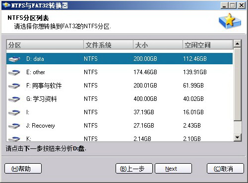 2、NTFS与FAT32分区间无损数据地互转。