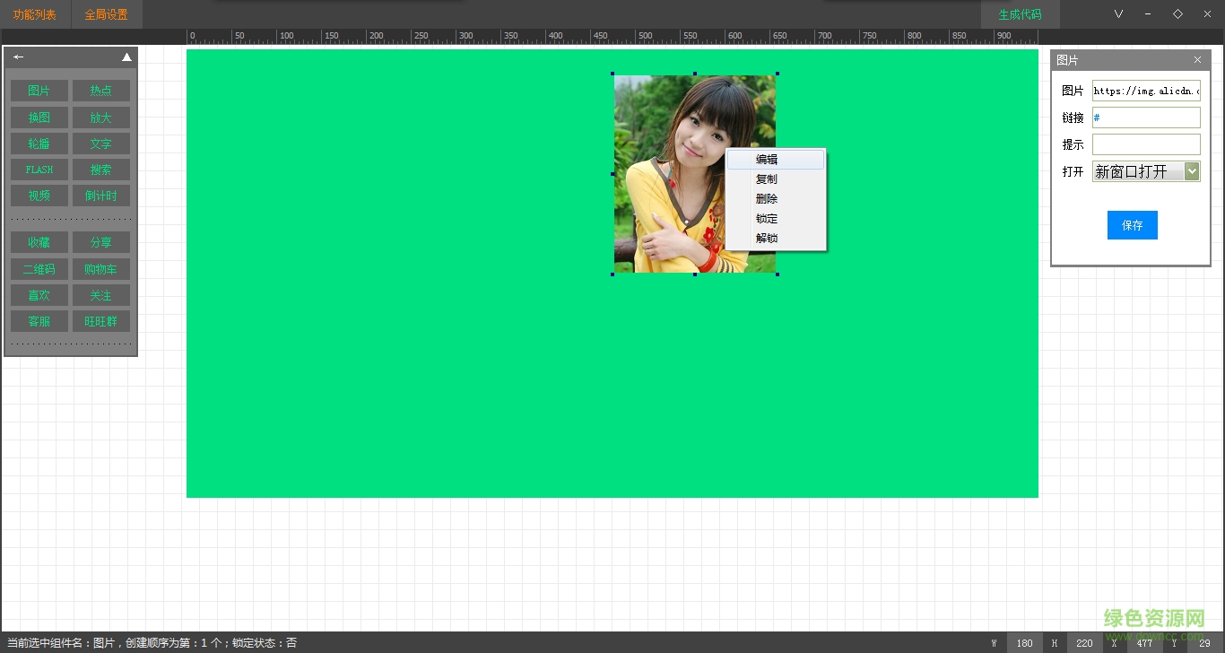 预置图片,热点、双面图,放大镜,轮播、视频、搜索框等多种组件