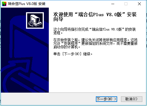 1.解压后双击安装图标:“瑞合信 Plus(电脑安装版)v8.0...”安装软件。例如;