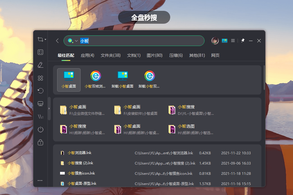 小智面板全面更新,支持快速启动应用、文件、网页,快捷导入置顶桌面分区,超快搜索体验;