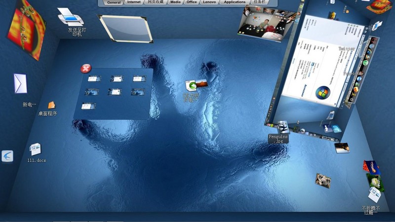 很多人说3d桌面能提高效率,但当前的硬件框架下,鼠标还是比较适合在2d下工作,多了一维度用起来实在有点不舒服啊。还有 bumptop 对中文的支持也很一般。