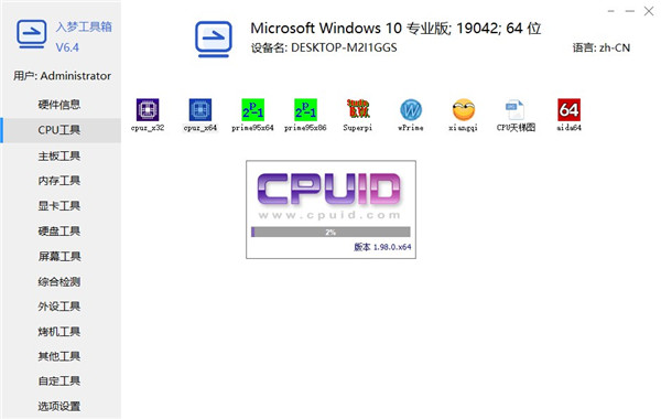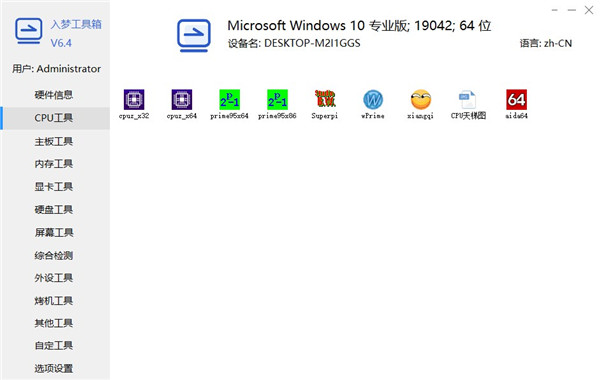 集成各种硬件工具,包括屏幕工具、资源工具、内存工具、主板工具。