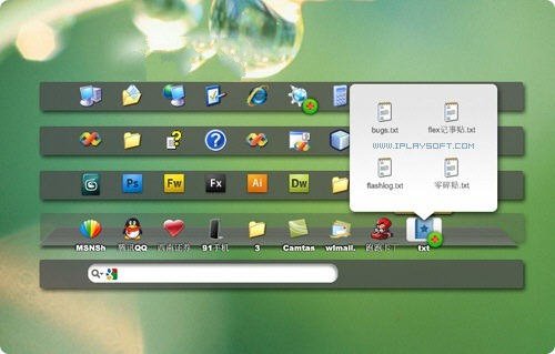 使用蛙灵桌面用户无需再层层退出到桌面寻找快捷方式了,状态栏的快速启动也省去了,任何时候你只需连续按两次ctrl即可显示出蛙灵桌面,大家快来体验下吧。