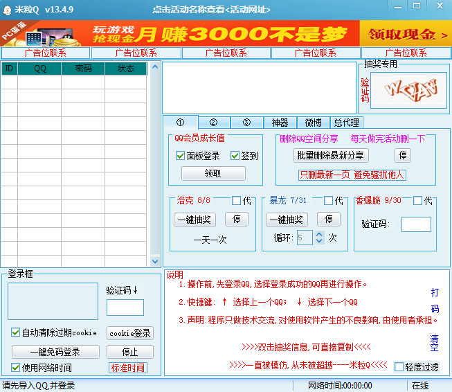 米粒Q一个QQ活动的抽奖软件,几乎包涵了所有的QQ的抽奖活动。可以抽钻。傻瓜式操作,轻松抽奖可以获得Q币、Q钻奖励,强烈推荐大家使用。