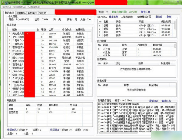 一款QQ农场牧场辅助辅助程序,综合QQ农场、QQ牧场和qq餐厅三款辅助于一身,它以节省您的工作时间为目的,让您更轻松的管理自己的农场和牧场,体验更多的游戏乐趣。