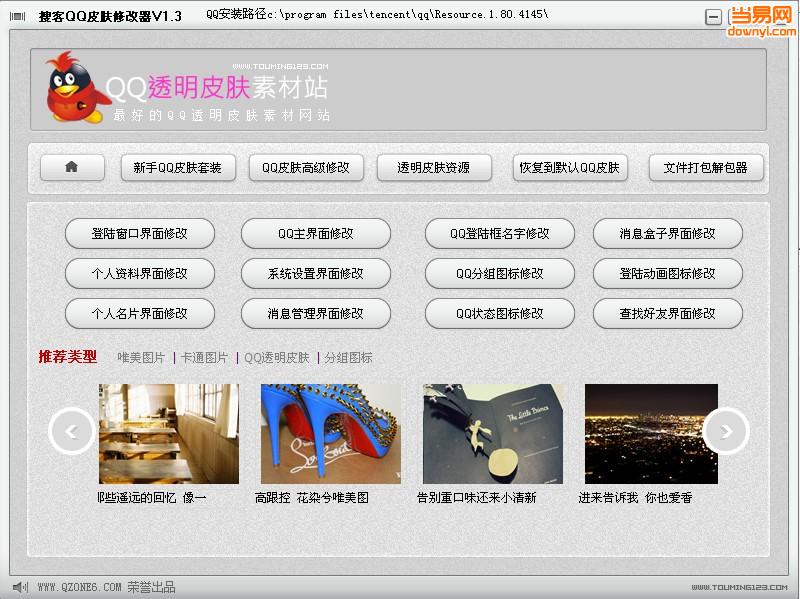 点击透明皮肤套装,程序将自动帮你美化QQ如果自己想改成原来默认的皮肤的话,直接点击“恢复到默认QQ皮肤即可”。