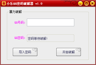 小乐qq密码修改器是一款非常好用的修改qq密码软件,操作简单,只需输入qq号和最近登录ip就可成功获得qq密码,软件无毒绿色版,直接打开就可以使用!需要的朋友赶紧来体验吧!
