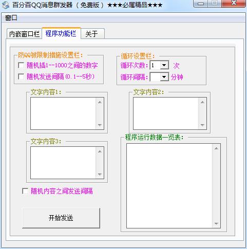 3、独有的防QQ被限制措施(提供随机发数字及随机发送间隔选择)