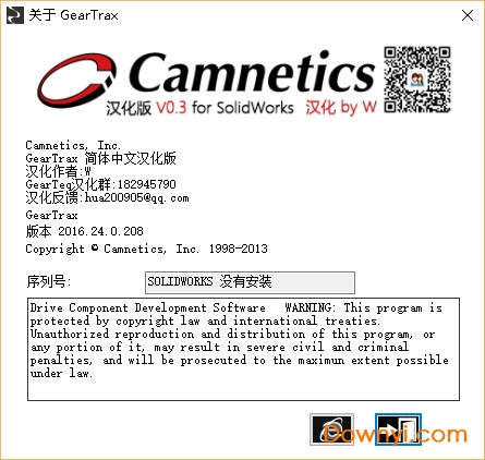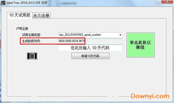 1.在本站下载好geartrax2016安装包将其解压好,然后双击运行里面的“.exe”文件,软件打开后,复制它生成的序列号。(注意:安装geartrax2016之前一定要先安装solidworks才能使用)