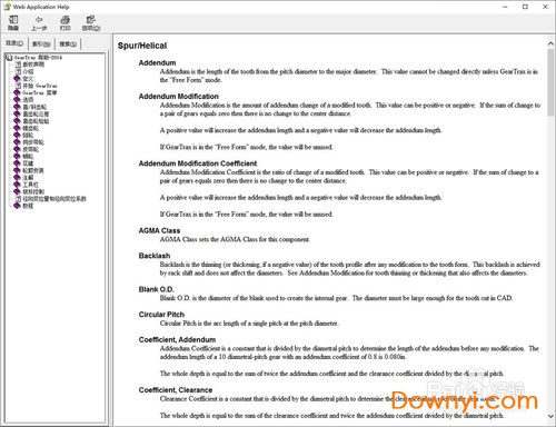 在帮助主题中有对各个参数的说明,这时发现软件还需要改回英文版才能对应起来的话,则打开英文版软件。一般来说,安装目录下面,GearTrax-zh-CN是中文版,而GearTrax就是英文版了。