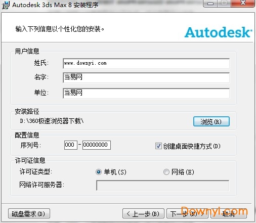 4.返回3ds max 8激活界面,选“输入激活码”,点击“下一步”,在“国家/地区”中选“中国”,然后输入刚才生成的激活码,点击“下一步”,激活成功。