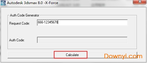 3.运行注册机keygen.exe,在“request code:”中输入刚才所记下的申请号,按下最下面的“calculate”按纽,就可以得到一组激活码(auth code)。