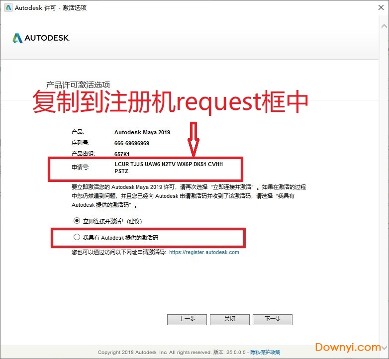 autodesk maya 2019注册机是一款实用的maya注册机,能够应用于autodesk 2019所有产品,用户只需要将申请号复制到注册机中,就能自动生成可用的激活码,使用极为方便,不清楚的朋友可以看看下方的具体修改过程。欢迎前来体验!