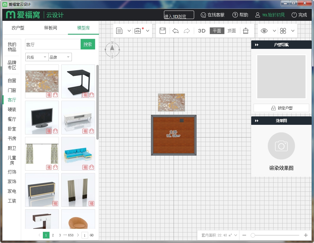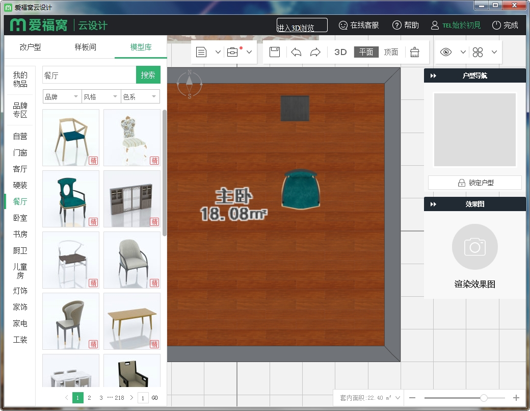 7.轻松点击、拖动、摆放家具,软装硬装一键完成。