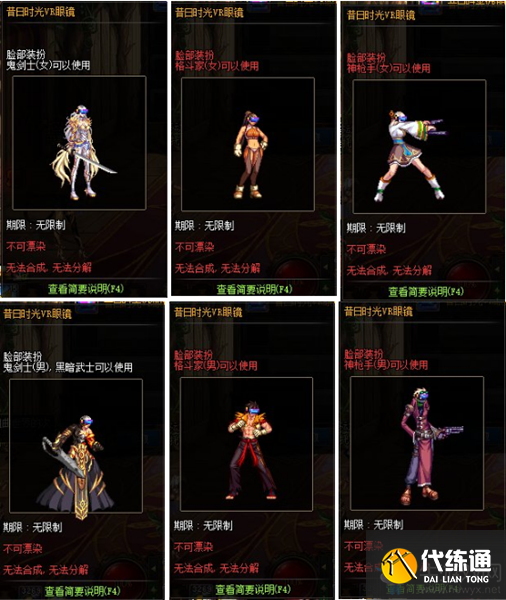 DNF全职业昔日时光脸部装扮外观一览: