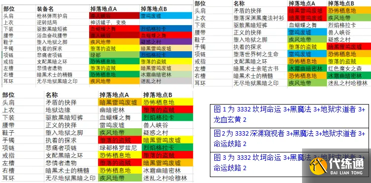 首先说一下3332的搭配及装配出处分别是1.坎坷命运3+黑魔法33+地狱求道者3+龙血2。2.深渊窥视3+黑魔法3+地狱求道者3+命运歧路2。3.坎坷命运3+黑魔法3+地狱求道者3+命运歧路2。