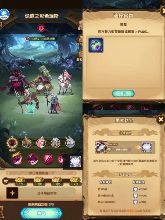 本次的领主任务不同以往活动,每个领主只要打4次就拿到全部4个奖励。所以不追求排名的话,最好的方式就是:只上一个英雄去打领主。另外,领主3天会刷新一次(原领主消失),所以小伙伴们千万别忘记打。