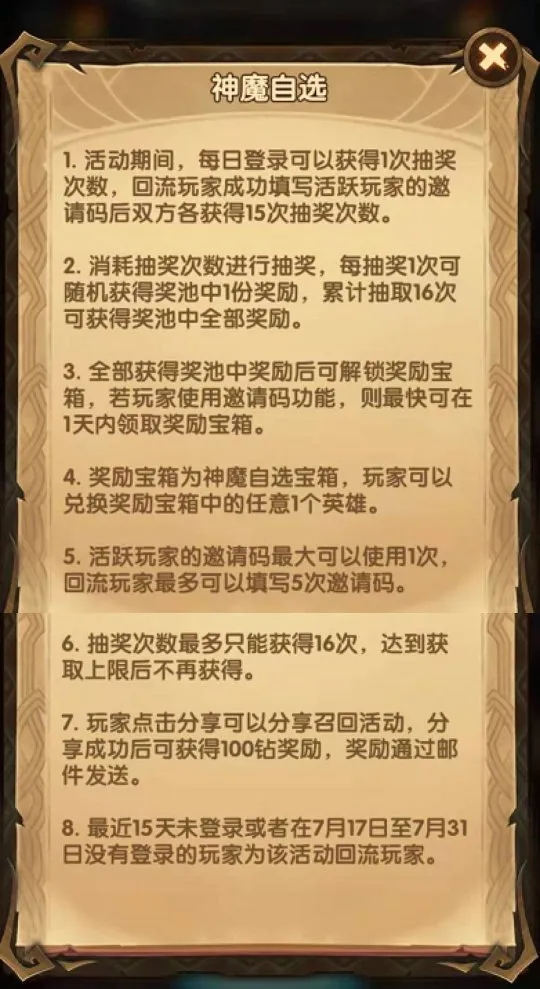 2、分享回流玩家(连续15天未登陆),对方输入邀请码,就可以第一天拿满奖励。