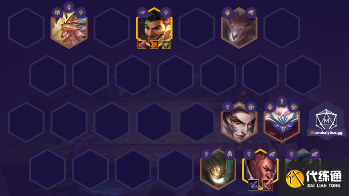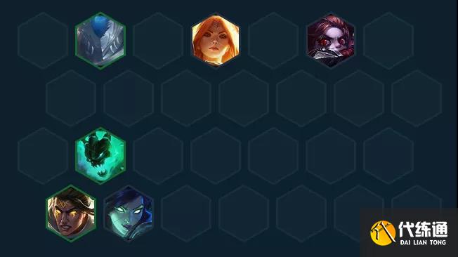 正义巨像—加里奥(4)、德玛西亚之力—盖伦(5)、钢铁少女—芮尔(4)、深海泰坦—诺提勒斯(2)、放逐之刃—锐雯(3)、暗裔剑魔—亚托克斯(1)、 正义天使—凯尔(5)、荣耀行刑官—德莱文(4)、魂锁典狱长—锤石(2)